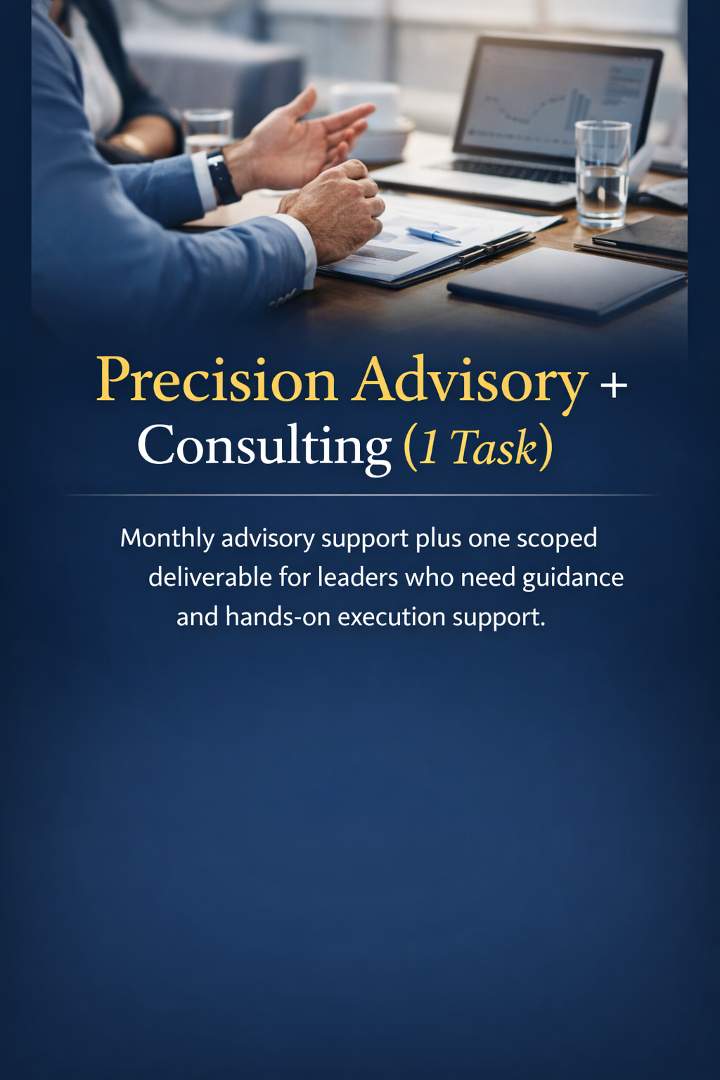 Our signature offers represent the highest level of strategic support designed for leaders ready to move with clarity, precision, and measurable impact.